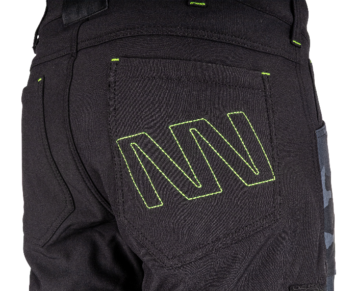 velmi pevný CORDURA 500D materiál odolný vůči prodření použit v oblasti kolen